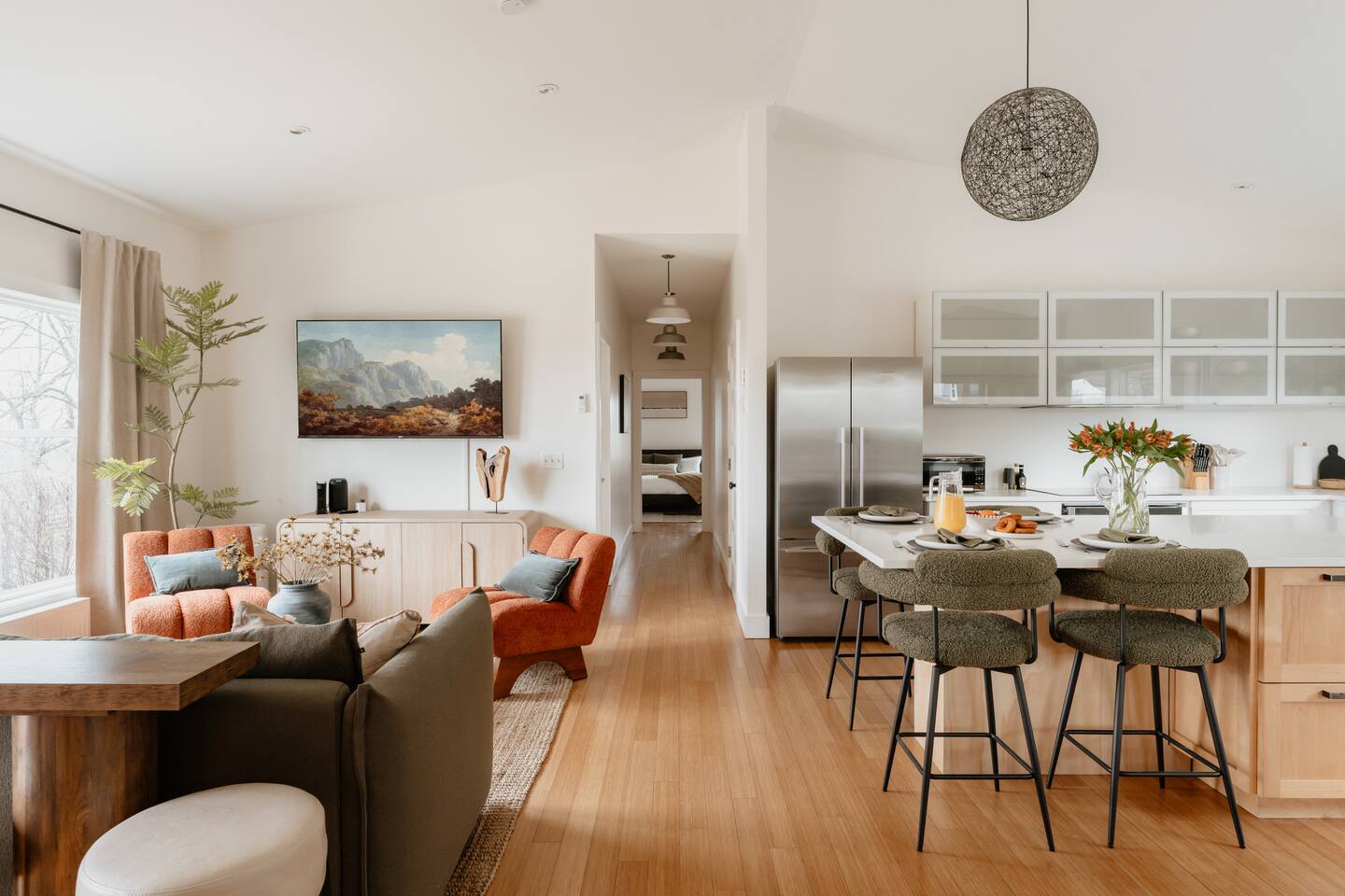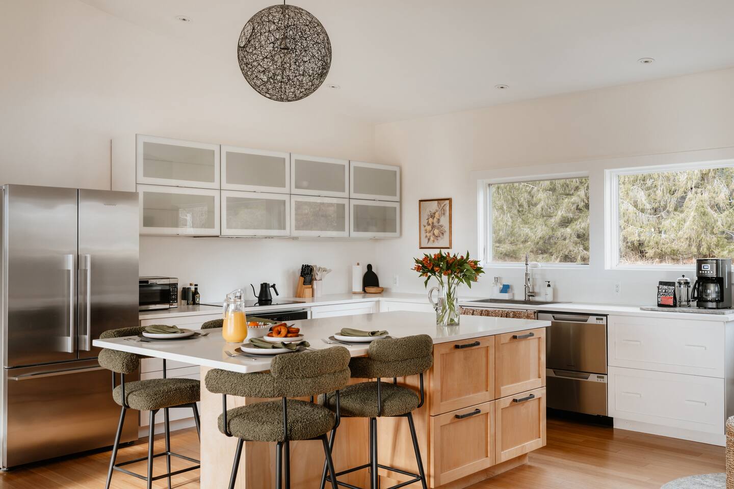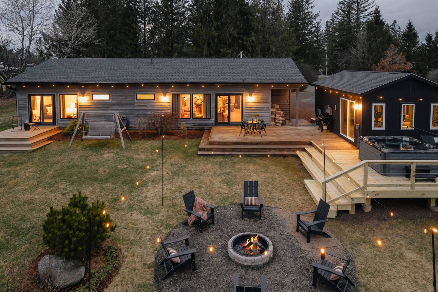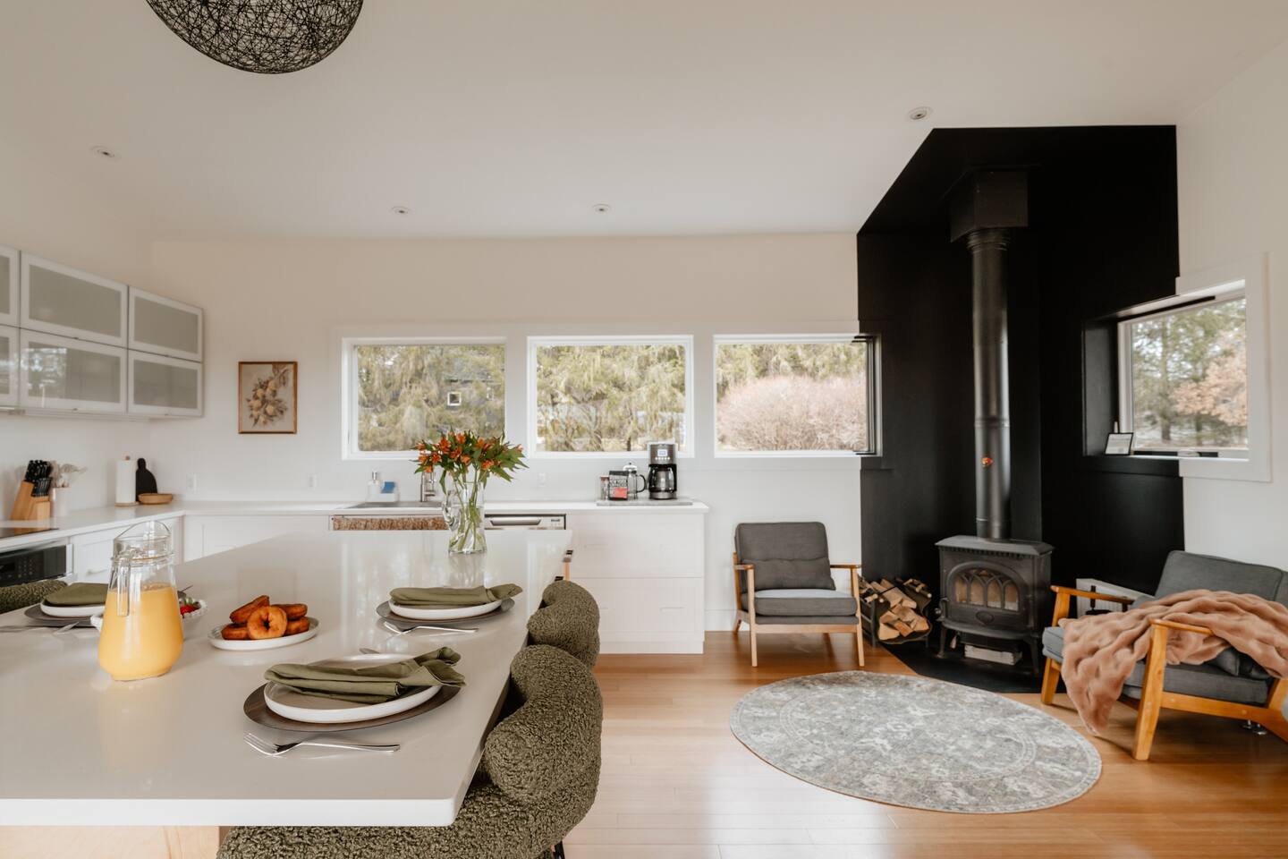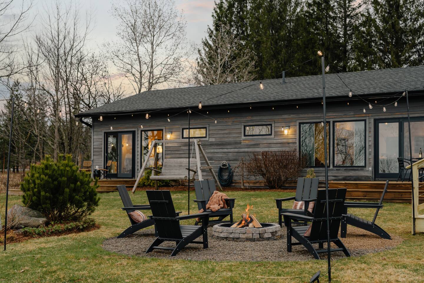 Koto is an old Finnish word that invokes a cozy and inviting place. Koto House was designed with Scandinavian influences as a restorative getaway that offers the following... KEY FEATURES: - Sleeps 6: 2 bedrooms and 1 queen-size sleeper sofa - 2 Bathrooms: 1 en suite with tiled shower and washer/dryer; 1 with shower/tub combo - Spa style hot tub - Custom built fire pit with string lights - Three expansive decks with multiple sitting areas - Complete home gym with cold plunge - Private home office with monitor - Modern and well-equipped kitchen (note: we provide Nespresso pods but not ground coffee or beans) - Indoor wood stove with sitting area - High speed WiFi and Roku tv's - Board games, puzzles, corn hole boards - Family friendly with pack and play and high chair - Dog-friendly - Gorgeous nature and mountain views - Walk to The Arnold house, and short drive to Livingston Manor, other nearby towns, and outdoor activities including hiking and fishing Read on for additional details below! ☆MAIN LIVING AREA☆ The main living area offers a large open space that opens via a sliding door to the backyard. A full wall of windows allows you to enjoy the peaceful nature view. - Living room with comfy seating - Smart Roku tv: log into your favorite streaming services - A Koala sofa transforms into an incredibly comfortable queen bed for sleeping extra guests - Bar area stocked with a blender for smoothies or post-workout protein, and all the barware needed for your favorite happy hour beverages - Sitting nook with a working wood stove. Firewood is provided by the host! ☆KITCHEN☆ - Eat in kitchen with a large island and quartz countertops - Full range of kitchen appliances, dinnerware and cookware - Drip coffee maker, French press (we do not provide coffee grounds) - Nespresso machine with pods provided ☆BEDROOMS & BATHROOMS☆ Primary suite - King bed - Private deck with seating overlooking the backyard - Dedicated office accessed from this bedroom, doubles as a perfect sleeping space for young children Second bedroom - Queen bed - Private deck with seating Additional sleeping space - Queen sleeper sofa in living room Bathrooms - En suite off primary bedroom with tiled shower - Second bathroom in hallway with tiled shower/tub combination - Washer and dryer available in primary bathroom. Host provides laundry detergent pods. - Host provides shampoo, conditioner, and body wash from Public Goods, a company focused on sustainability and natural ingredients. ☆OUTDOOR LIVING☆ The property is set on 2 private acres, with the backyard overlooking a beautiful field and mountains in the distance. - Luxurious spa style hot tub with 24/7 access and guest control over heat and jets - Custom built fire pit with 6 Adirondack chairs (firewood provided by host) - String lights to create the perfect evening vibe - Outdoor dining table - Sun loungers - Gas grill - Private decks with seating off both bedrooms - Corn hole available for guests - Please note that we are dog friendly, but our yard is not fenced in ☆GYM☆ Don't miss a beat with your fitness routine! In a second building just adjacent to the main house is a fully outfitted gym, complete with: - Smith machine with adjustable bench, olympic barbell, full set of weights, and cable system - Peloton bike with commercial subscription. Log into your own account, or use a free trial. The bike has delta clip ins as well as toe cages, so you can use cycle shoes or regular sneakers. - Dumbbell set up to 50 pounds - Yoga mats and blocks - Kettle bells - Jump rope - Roku smart tv - Bluetooth speaker ☆COLD PLUNGE☆ Continue your daily cold plunge practice, or see what all the hype is about for the first time! We have a tub from The Plunge, with state of the art chiller. Precise temperature control allows you to immerse yourself in water down to 37F, or ease into the practice of cold therapy at a higher temperature. ☆HOME OFFICE☆ A dedicated home office space is accessed through a door from the primary bedroom. - High speed wi-fi - Monitor with USB and USB-c adaptor to extend the screen from your laptop. - Bluetooth mouse and keyboard ☆FAMILY FRIENDLY☆ Blackout curtains in the office make this room a perfect sleeping space for a young child in a pack and play. We provide: - Pack and play with sheets and mattress protector. There is a padded mattress cover for children over age one. - Bath tub lounger - High chair - Dinnerware ☆STAY HOME OR VENTURE OUT☆ Koto House is set on 2 acres, with the backyard facing a beautiful private field, perfect for those seeking quiet rejuvenation. The home is only 6 minutes from charming Livingston manor, with shops, fine food and wine markets, and delicious restaurants. Or, simply walk through the field to The Arnold House for dinner and drinks. A scenic drive connects you to other nearby towns, beautiful hiking, fly fishing, and other local attractions. ☆LOCAL ATTRACTIONS☆ - Livingston Manor: Discover unique shops and restaurants. (5 min) - Nearby towns: Explore Roscoe (10 min), Callicoon (22 min), and other cute villages in the Western Catskills - Fly Fishing: Book a guided tour with Dette Flies (6 min), the oldest family run fly shop in the world. - Hiking: Expansive trails in Willowemoc (25 min), Balsam Lake Mountain, and Sundown Wild Forests. - The Arnold House: Dine in The Tavern, a historic setting with delicious local fare. (1 min) - The DeBruce: Award winning fine dining restaurant. (14 min) - Hemlock Neversink Spa - Get a day pass, which includes 60 minute massage, lunch at onsite restaurant, and all day access to pool, fitness center, and other amenities (28 min) - UpWard Brewing (4 min) & Catskill Brewery (7 min): Enjoy local craft beer at two breweries nearby.